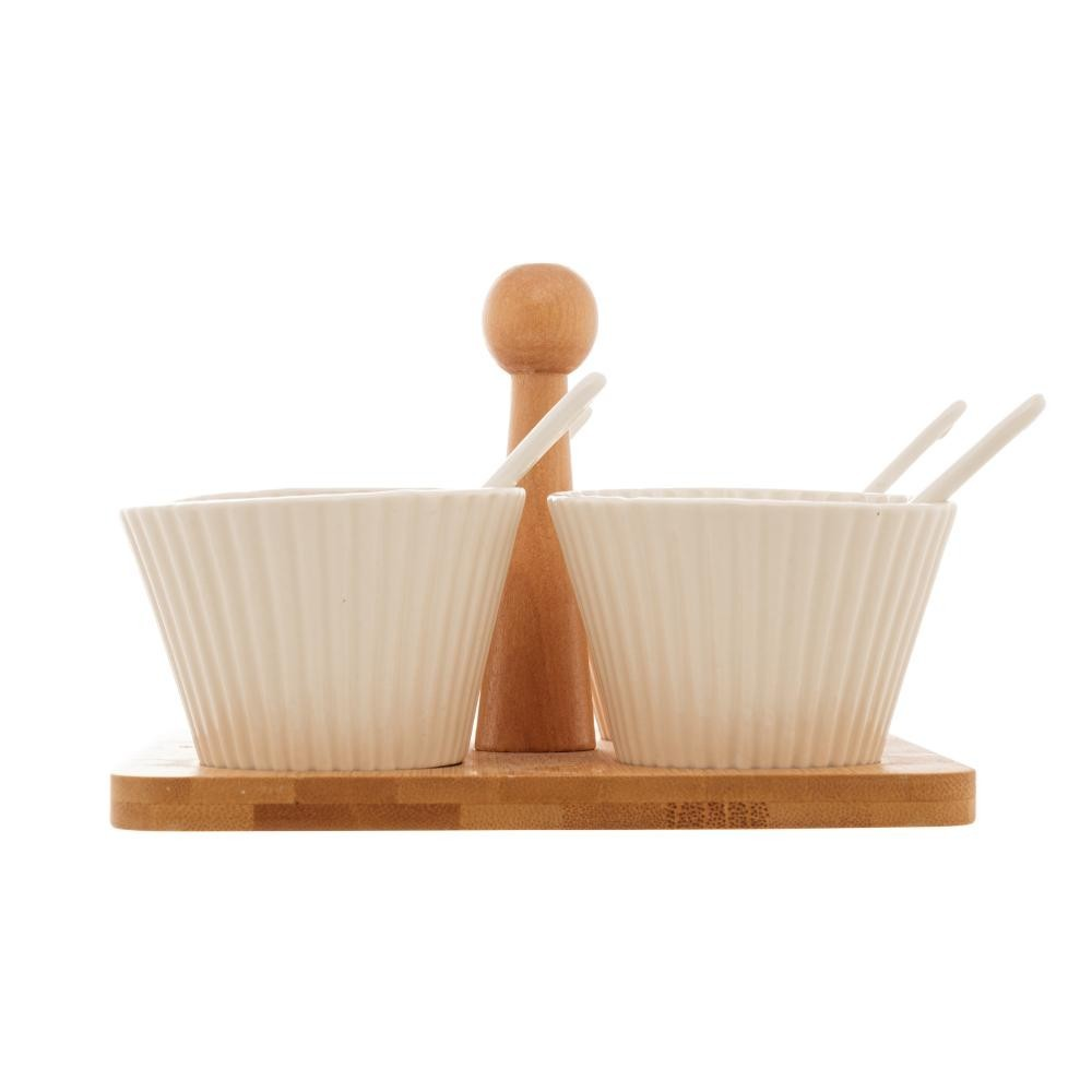 Com design clean e atemporal, o suporte em bambu natural harmoniza com diferentes estilos de decoração, enquanto as molheiras individuais com colheres garantem praticidade no dia a dia e em ocasiões especiais.