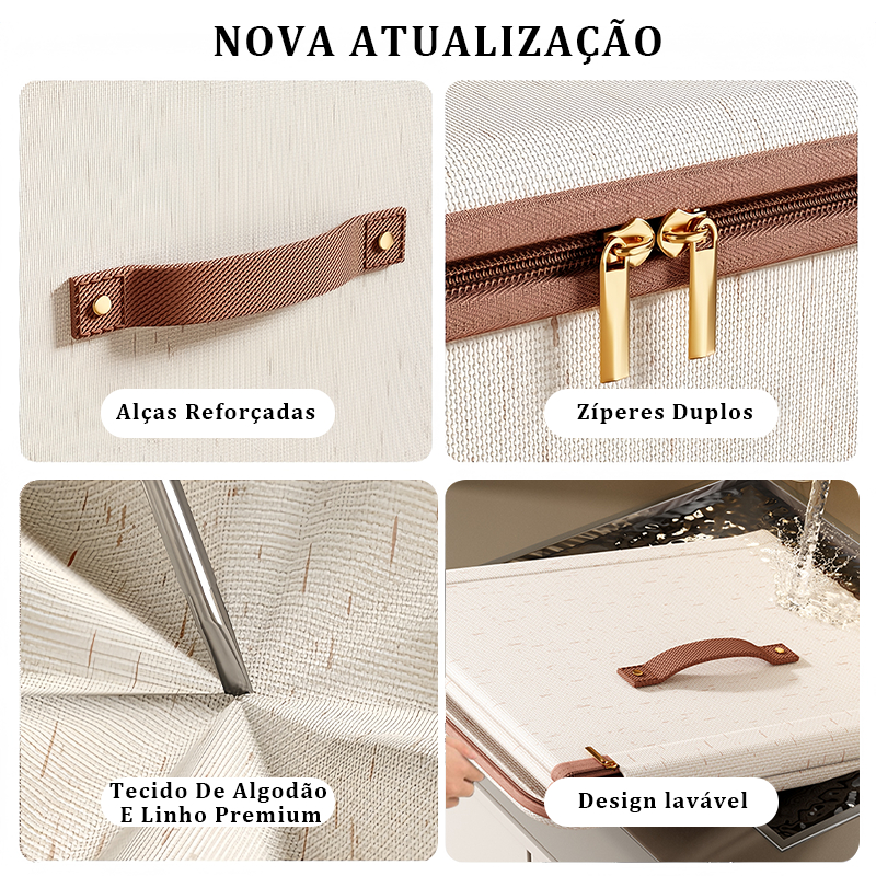 Caixa de armazenamento de algodão de roupas grande cremalheira tecido cesta dobrável quarto