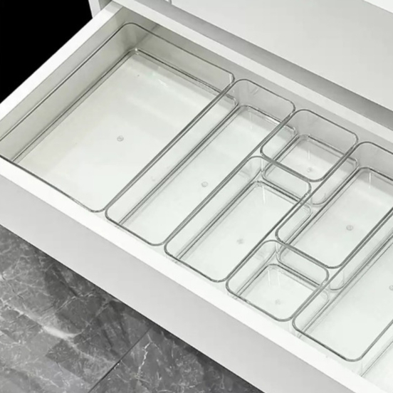 Com seu design modular em acrílico cristal transparente, ele permite visualizar facilmente seus itens e organizar qualquer gaveta com elegância.
