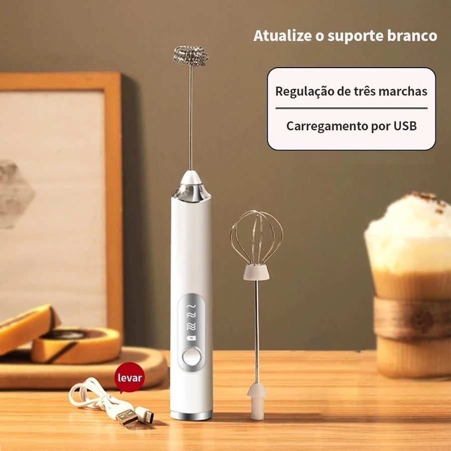 Basta apertar o botão e pronto: espuma perfeita em poucos segundos.